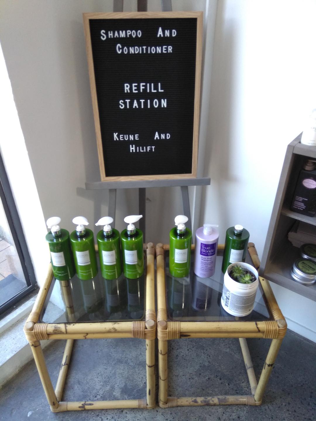 We have an in salon refill station for shampoo, conditioner and mask top ups, with discounted rates to encourage clients to refill.